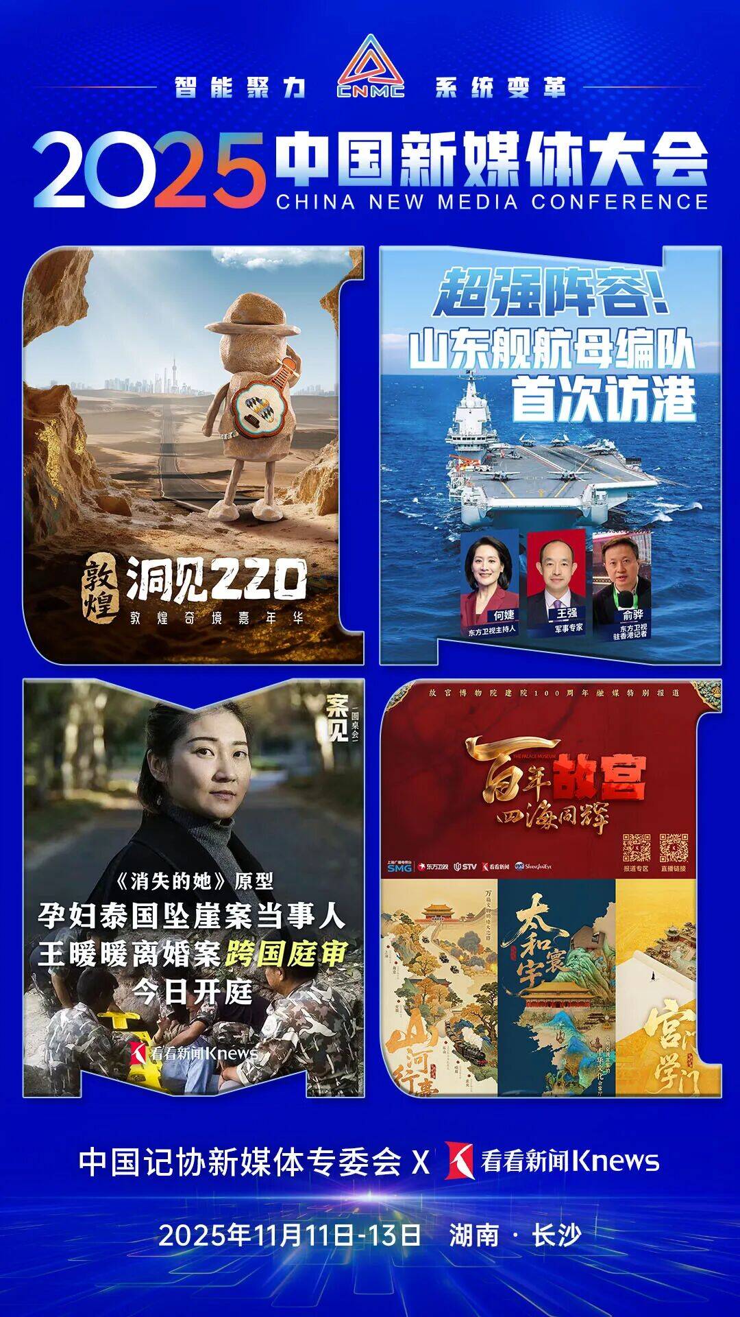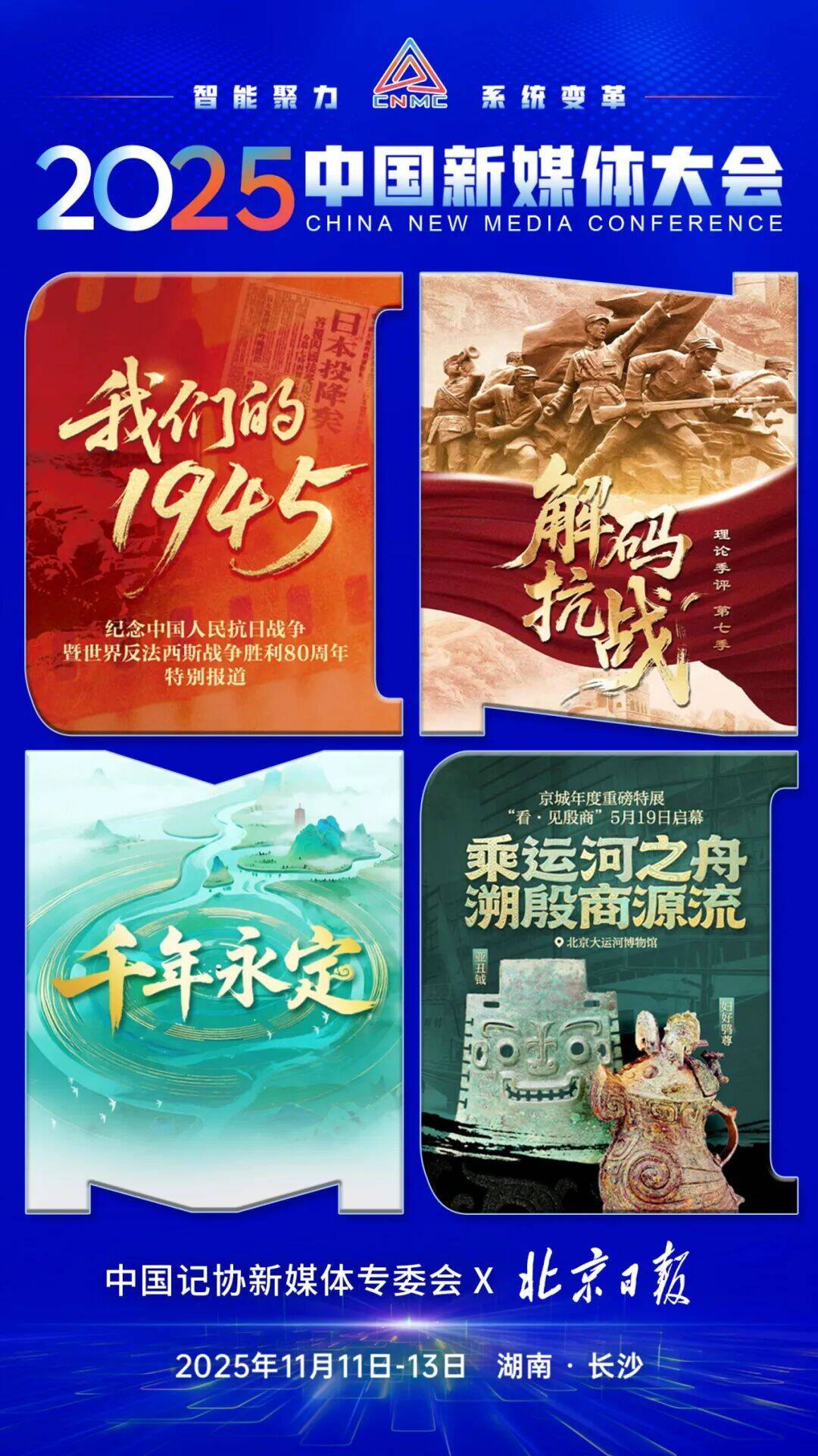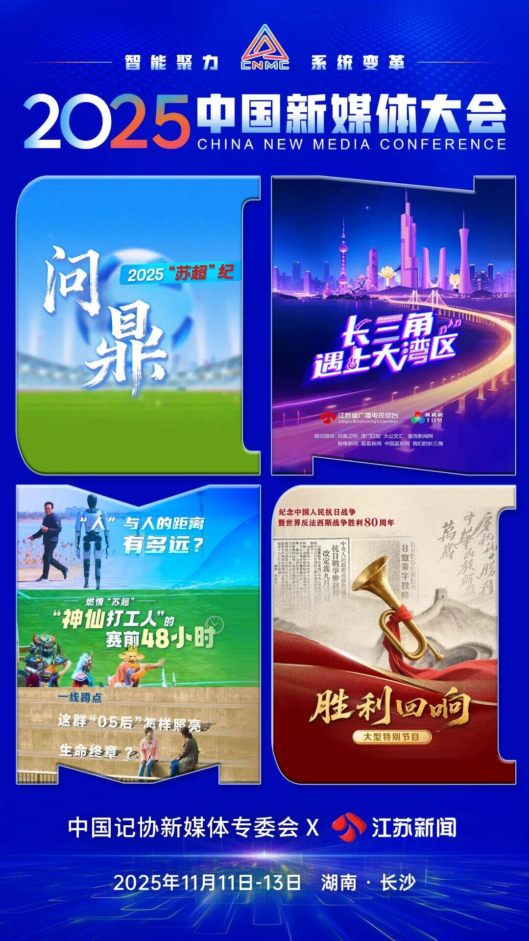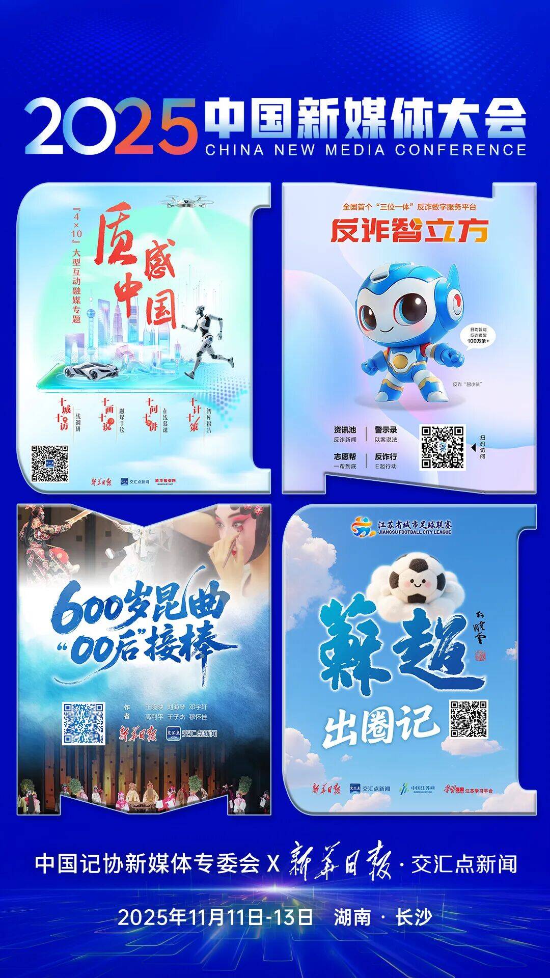 2025中国新媒体大会将于11月11日至13日在湖南长沙召开股查查,中国记协新媒体专业委员会各成员单位纷纷推出“联名海报”为大会预热。