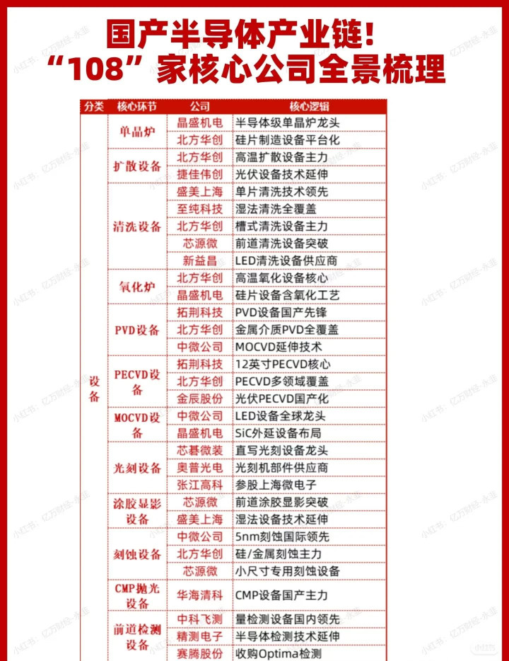- 清洗设备:盛美上海(单片清洗领先)、至纯科技(湿法全覆盖)、北方华创(槽式清洗)、芯源微(前道突破);